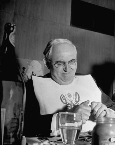 Sen. Arthur H. Vandenberg eating lobster at banquet.