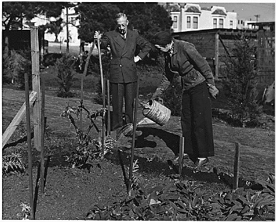 As Gertrude waters,she says to her babycakes.”Tis my Victory Garden” it will be a victory if’n we get something out of it,befoe the bugs do.
