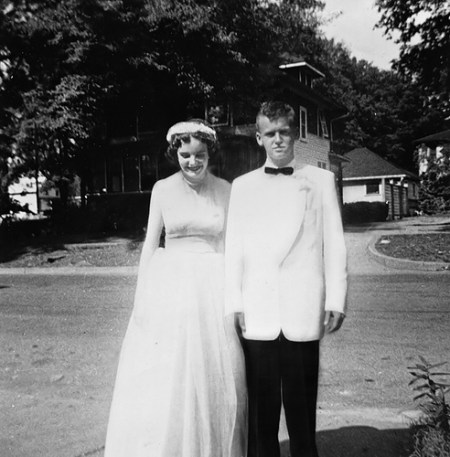 I hope the guests give them a rousing good-bye as they head out to their first night as a married couple. She does look a bit shy!
