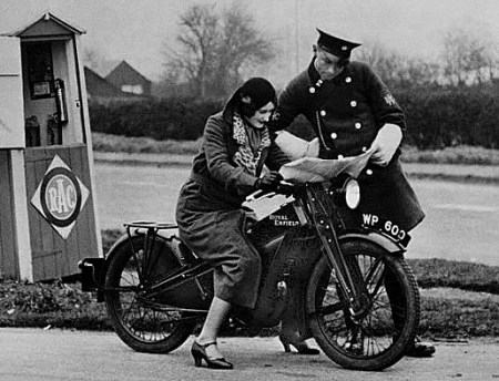 Love this gal on her motorcycle and I hope that the map and her friendly RAC guy gets her to her destination.