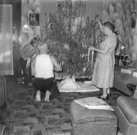 I have a picture of a tree from when I was around 2 or 3, and it looks a lot like this one: the tree itself with bare spots you don’t really notice because the decorations and tinsel make it the best tree ever.