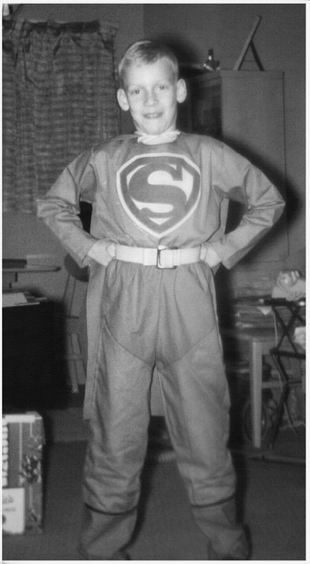 my brother hd a superman suit too. He drove me crazy,zipping around the house like he was superman. Until the day he jumped off the haystack and broke his arm. He then realized he had no phone booth around.