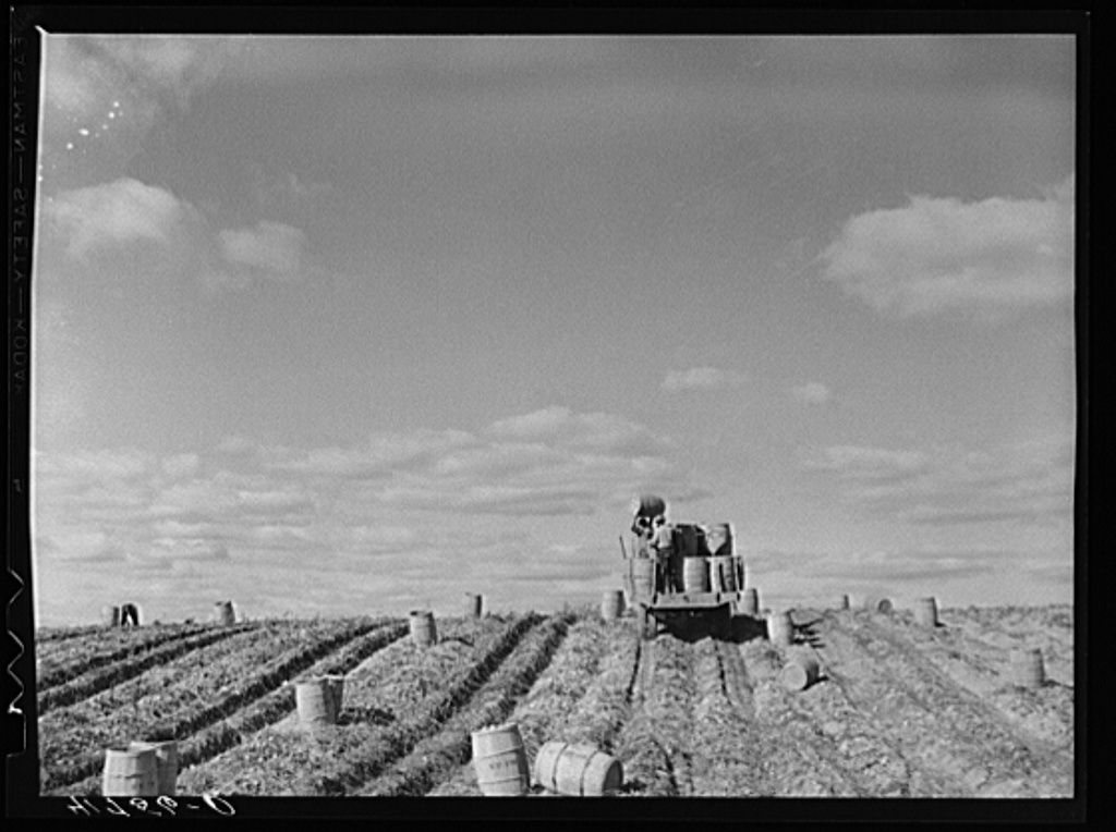 The traditional potato barrel harvest.