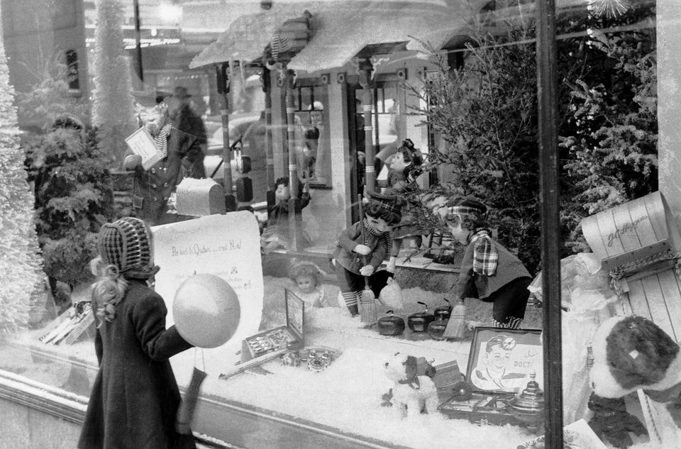 All the department stores had their windows decorated for Christmas. In the 1950s the windows were decorated with moving elves and Santas. They had electric trains moving around the decorations. Today the decorated windows would not attract kids today who live in an internet and social media world. π