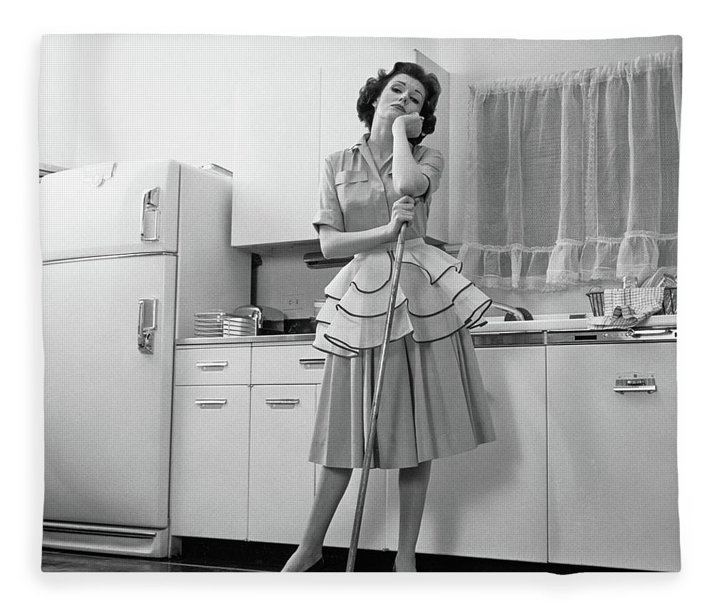 A 1950s cartoon version of a housewife. All she needs is to wear a strand of pearls around her neck like June Cleaver wore on the TV show, “Leave it to Beaver”.