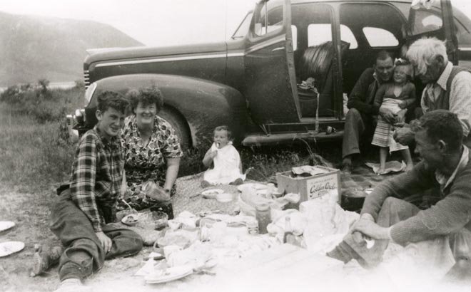 I saw the description of this picture: family out for a ride and a Sunday picnic, but I knew anyway. They have plenty of food, and their car isn’t carrying their belongings in the front or on the roof or in the back if we could see it.