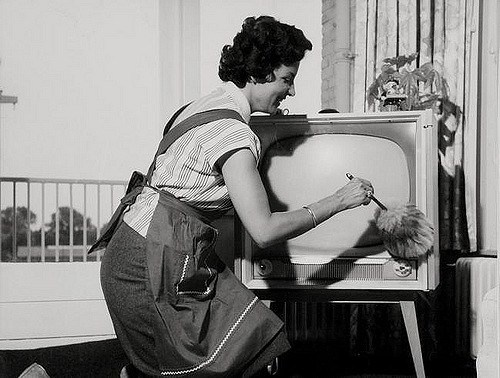Using a feather duster is so old fashioned. Today, we buy swifter pads. Did your mother dust wearing an apron over her skirt? Mine never did. She wore a house dress. It’s still work