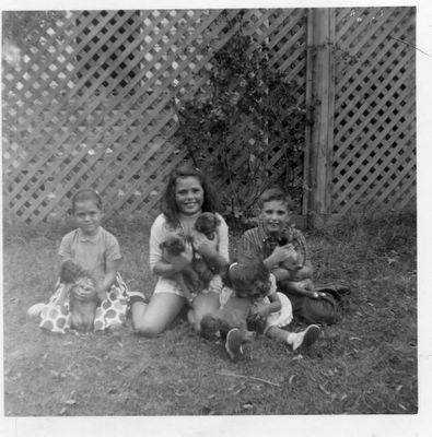 Above are my sister, me in the middle and my brother. We are holding Duke’s pups. Their mother’s name was Heidi with a lot of German after.