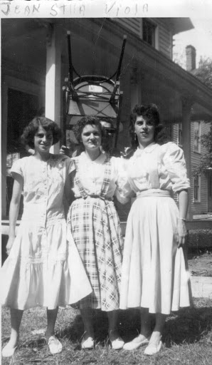 No, none of them are related. It was the dresses that got me. Also, the woman on the right reminds me of pictures of my mother when she was young.