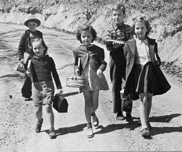 In the spring, I rode my bike to school. My grammar school went to eighth grade and several of my classmates went to the local high school, and they walked. I rode a city bus to my high school two towns over.