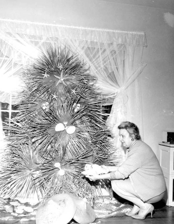 I found it on a site called Vintage Christmases in Florida. There were shots of trees being decorated underwater and on beaches. I like this tree and the two whatever in front of the tree.
