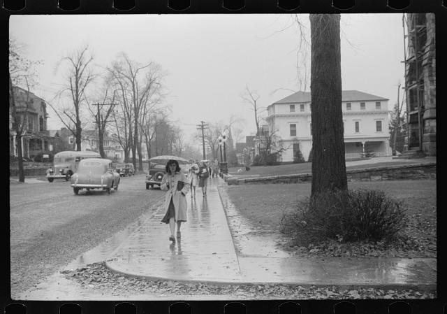 I guessed she was walking home from school, and I thought the people walking behind her were also on their way home from school. Her mother made her bring an umbrella with her.