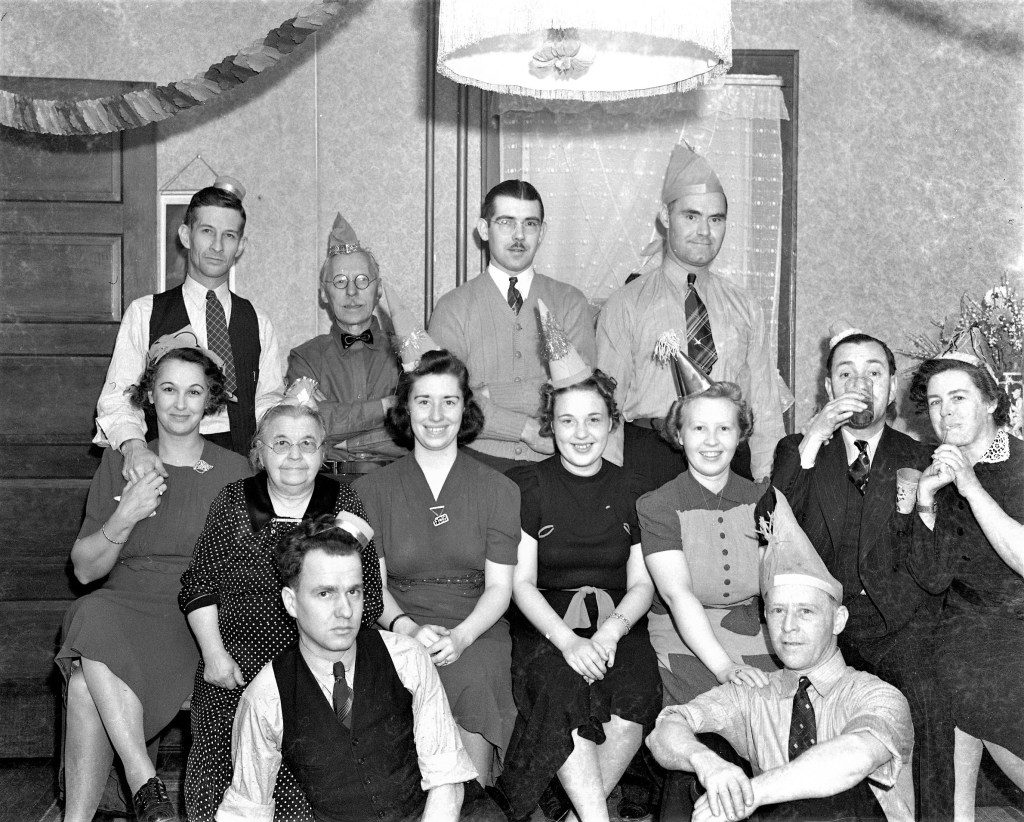 Notice, in this motley looking group, none of the men are smiling. One is drinking which might crack a smile on his face later after downing a few more drinks. π Most of the woman are all smiling. Hmm?
