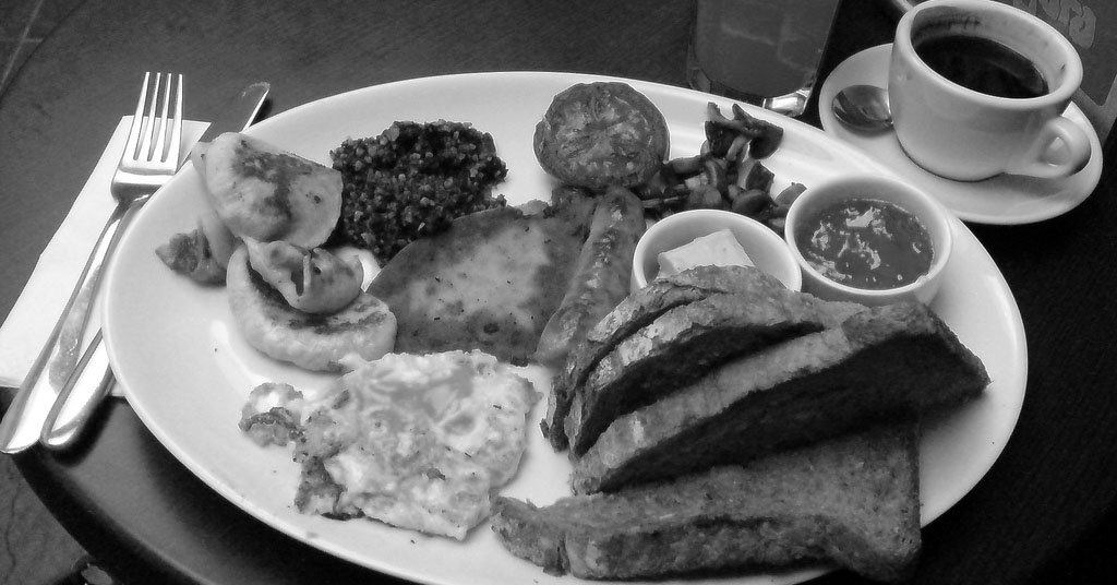 This s considered a full English Breakfast. I can easily live without the baked beans. However, their version of bacon is not to my liking. It’s similar to ham. Their sausages are very good. They refer to them as, “Bangers”, which could have a sexual connotation. 🙂