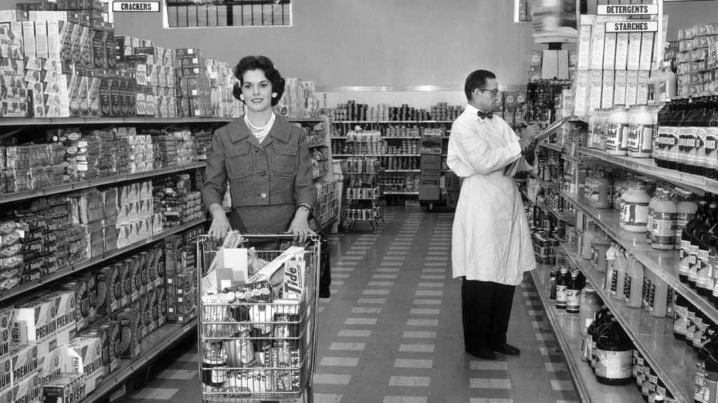 Times have really changed. That woman is wearing her pearls while grocery shopping. You are going to pickup from the grocery store in your PJs in the car. 🙂