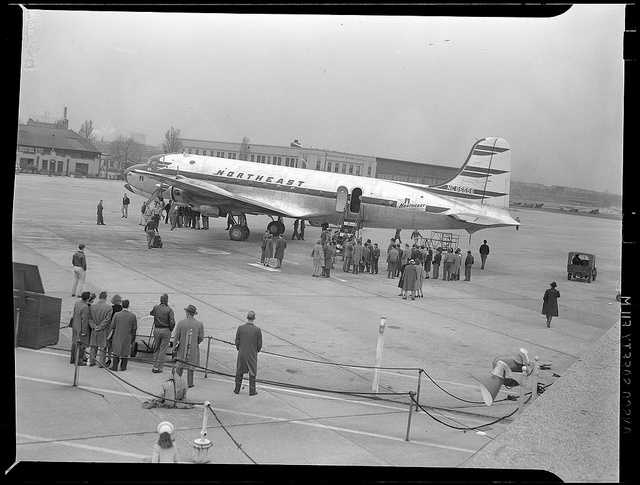 Wow, a Northeast Airlines DC-4. Northeast Airlines was a regional airline based in the New England area. In the 1950s they were awarded routes from Boston and New York to Florida to give them routes that could be profitable in the winter. They were merged into Delta.