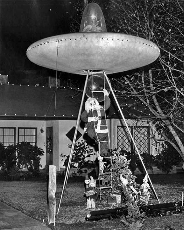 Santa.coming from or gong to space.