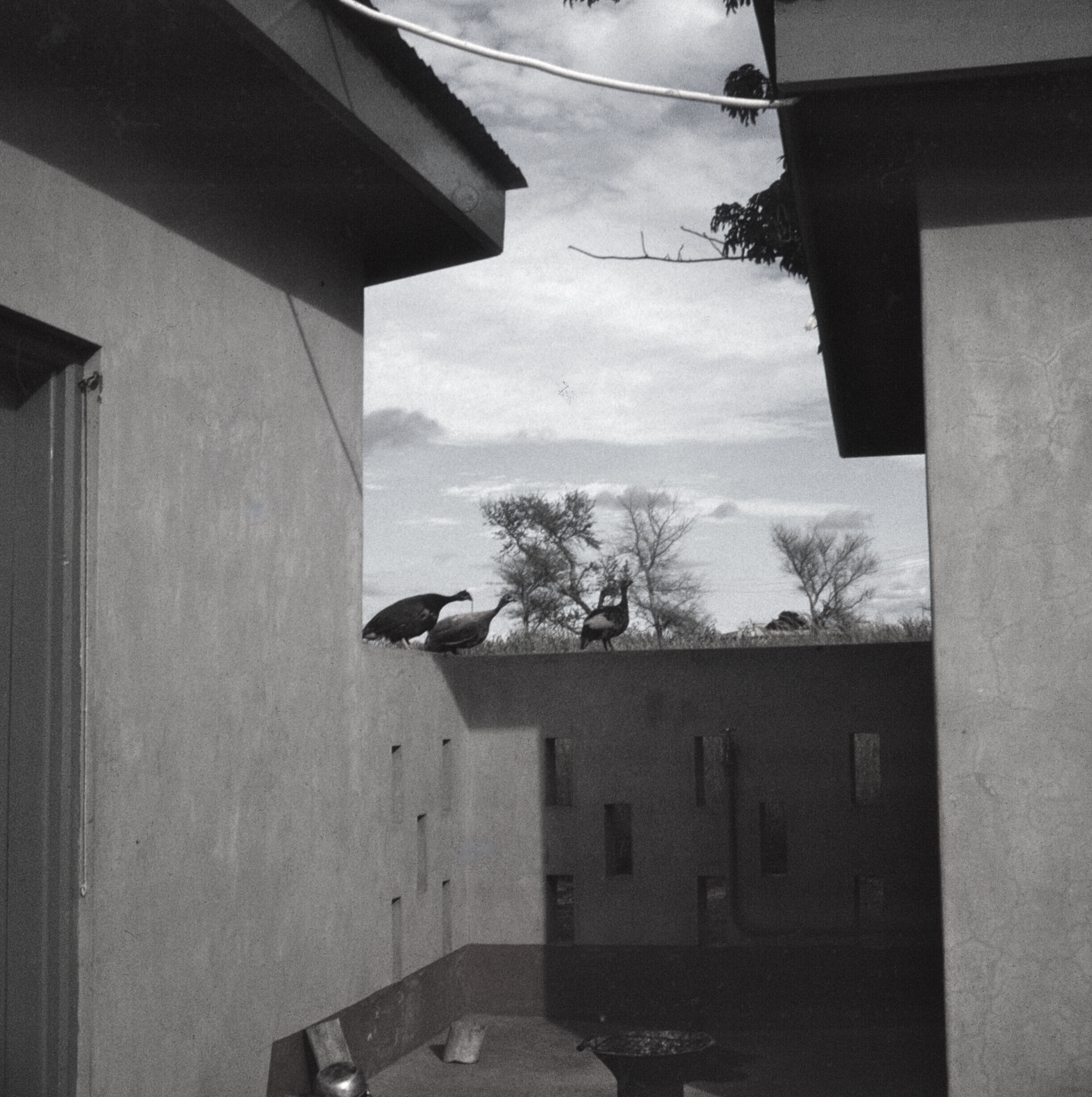 My house in Ghana had a corrugated tin roof. The whole house was made of concrete. The house, inside and outside, was painted white. The eating area, which was the back room had a table, two chairs, and the fridge. The room had one full wall facing the concrete backyard and screened windows across the wall. In the middle of the two banks of screens was the back door to the yard where the water tap, the toilet, cooking area and shower were. The cooking room had a stove which was seldom used as we couldn’t get gas. Wood charcoal was what we used for cooking. The toilet room was sometimes shared with a sitting hen. She used to try to peck my feet if I got too close. The shower room had a single tap of cold water and a tiny window with wooden slats. I used to keep my bath stuff on the sill of the window. The house didn’t have a whole lot of furniture, but I had enough.